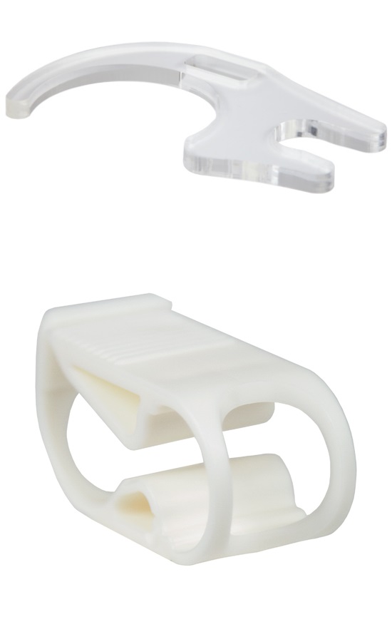 Para montar a Hydrodouche, primeiro conecte o suporte de montagem à câmara hidráulica, observando que o suporte pode ser revertido para orientar o suporte da vareta hidráulica para o lado esquerdo ou direito da câmara, conforme desejado. O suporte será encaixado na posição com um encaixe positivo; portanto, tome cuidado para não prender o dedo entre a parte interna do suporte e a câmara.
