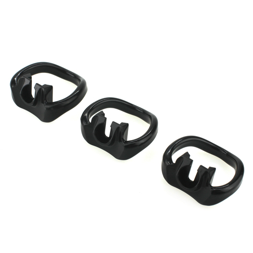 Tamanho: diâmetro interno de 3,5 cm, 7 cm de comprimento interno; Anéis: 4,2 cm de diâmetro, 4,4 cm de diâmetro, 4,7 cm de diâmetro