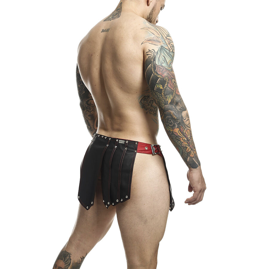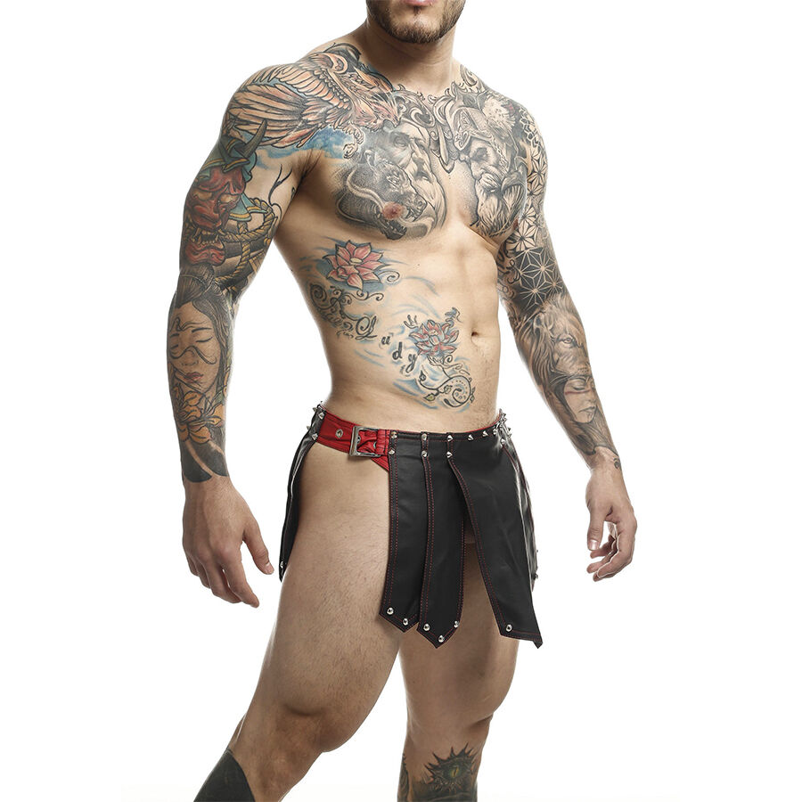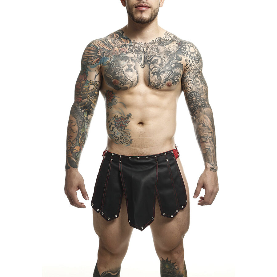 Provoque seu parceiro da melhor maneira possível com a Saia Romana de Couro Guerreiro. Aberta nas laterais. Design triangular nas costas e na frente. É uma adição confortável e funcional à sua rotina de quarto. Totalmente ajustável e feita de couro sintético durável, use-a por baixo para uma fantasia à qual ele não conseguirá resistir!